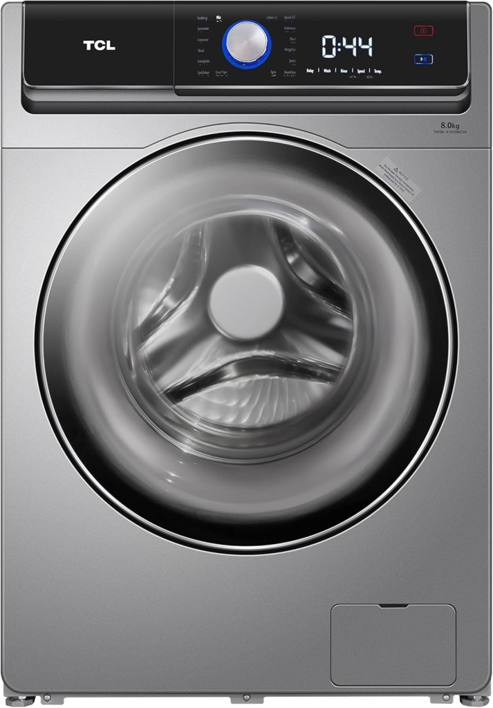 2- غسالة بتحميل امامي سعة 10 كجم من تي سي ال، لون فضي